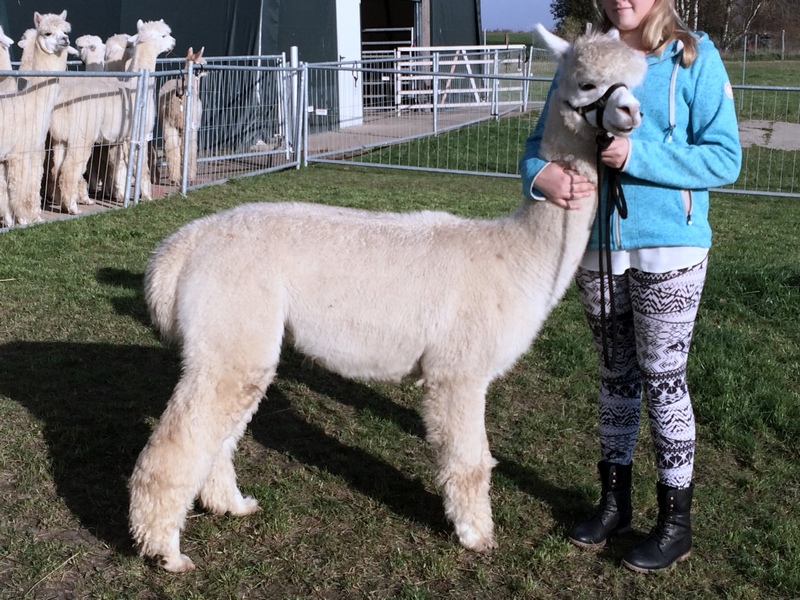 Weißer Huacaya-Hengst aus eigener Nachzucht